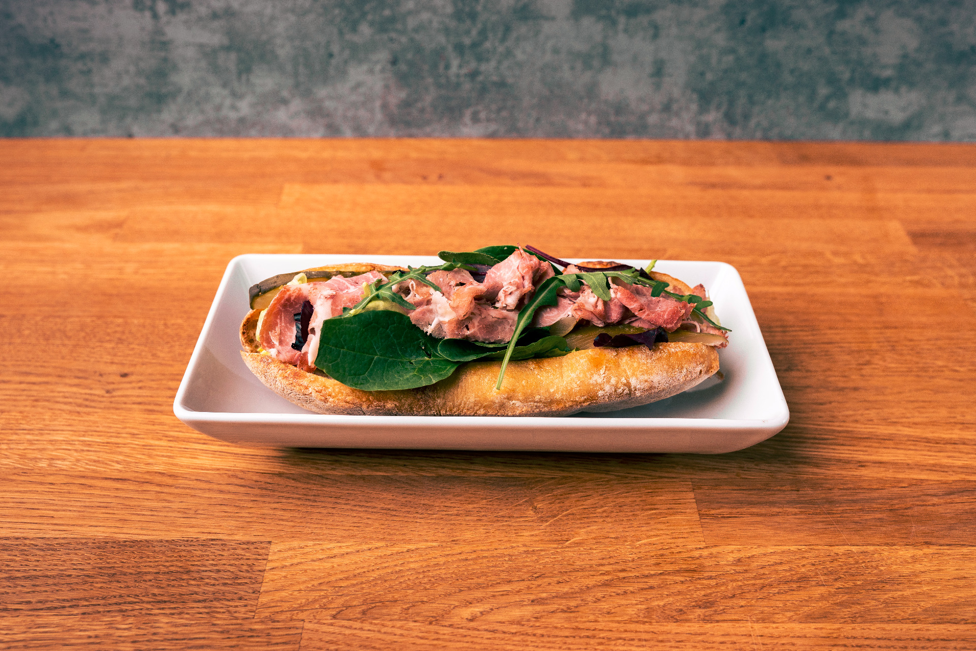 Bagietka z Rostbefem (Pastrami)