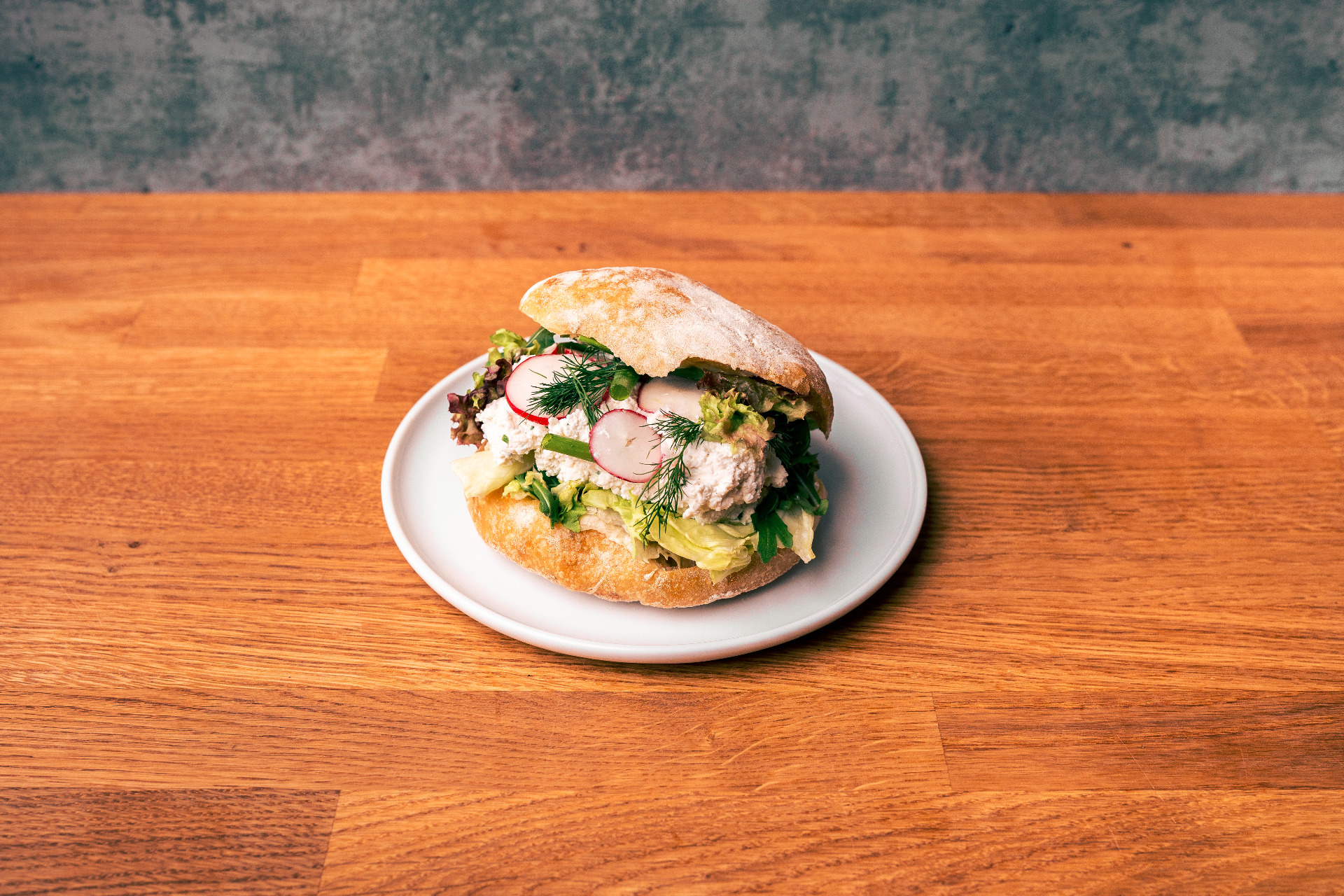 Twarożek, śmietana, cebulka, szczypiorek, majonez porowy, sałata, rzodkiewka