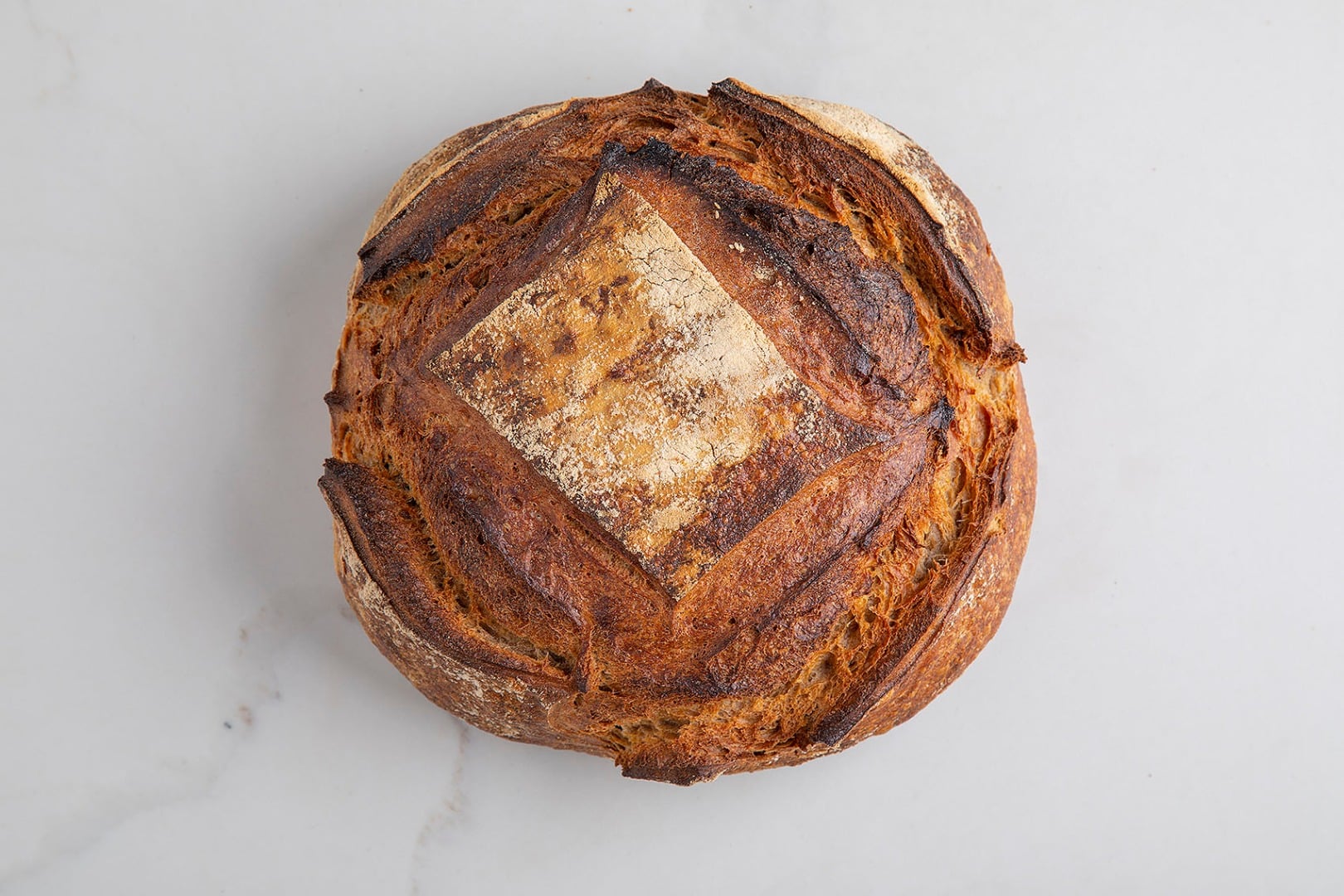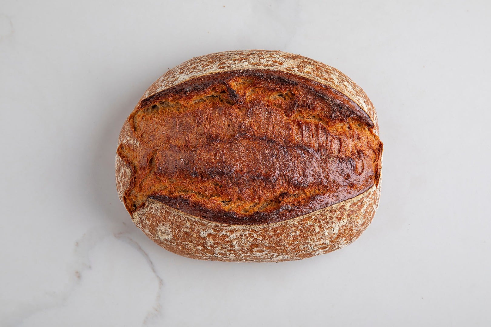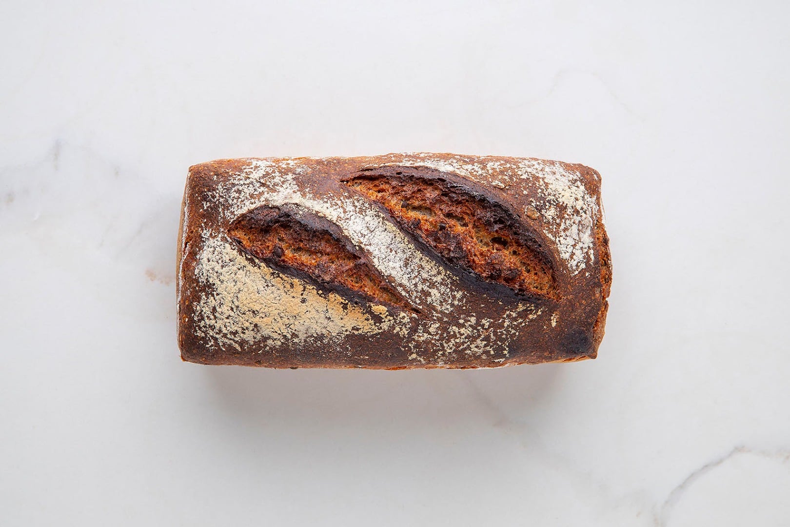 Mąka pszenna LABEL ROUGE, mąka żytnia BIO, zakwas żytni, pestki dyni i słonecznika BIO.