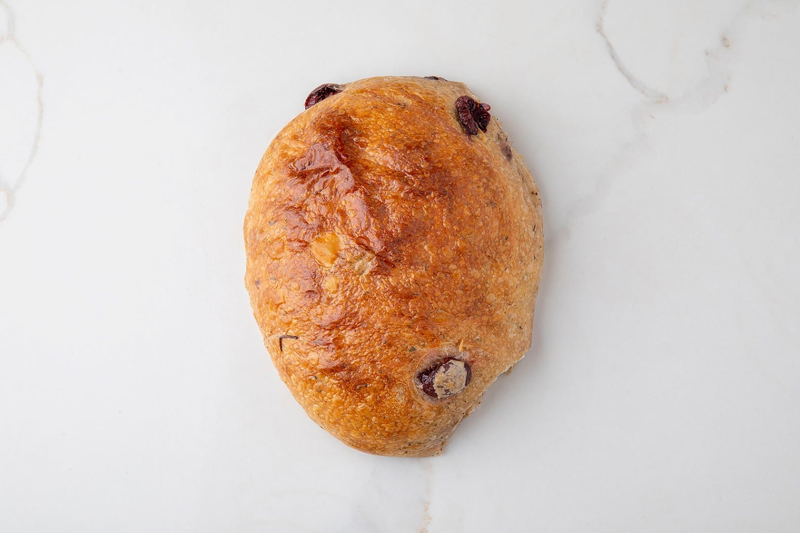Mąka pszenna, mąka pszenno-gryczana CRC z pistacjami i suszoną żurawiną, zakwas żytni.